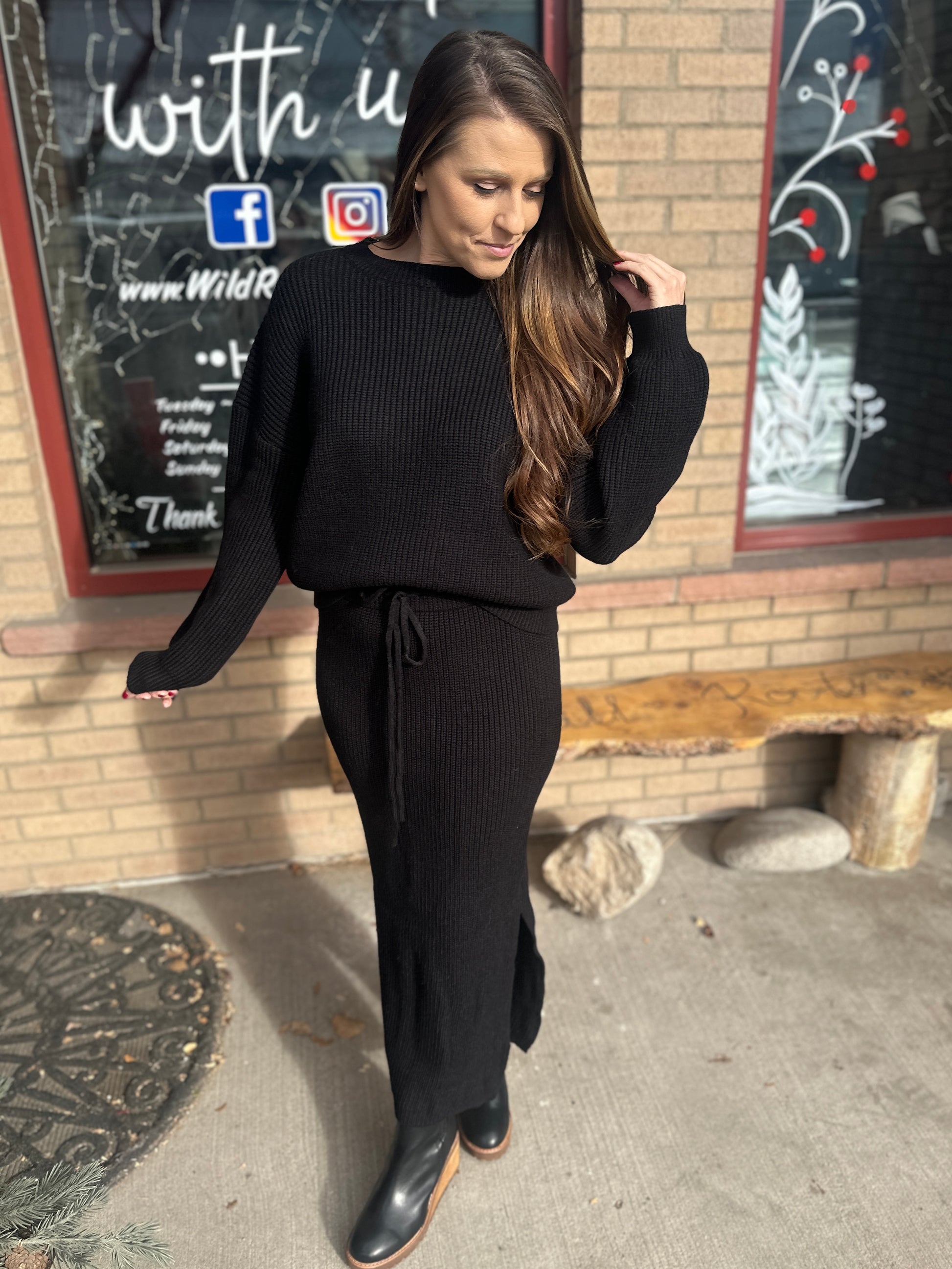 Cozy up in this oversized black knit sweater that’s as soft as a hug and stretches just right for all-day comfort. Perfect for lazy days or casual outings, it combines relaxed style with a playful edge to keep you feeling comfy and looking effortlessly cool.