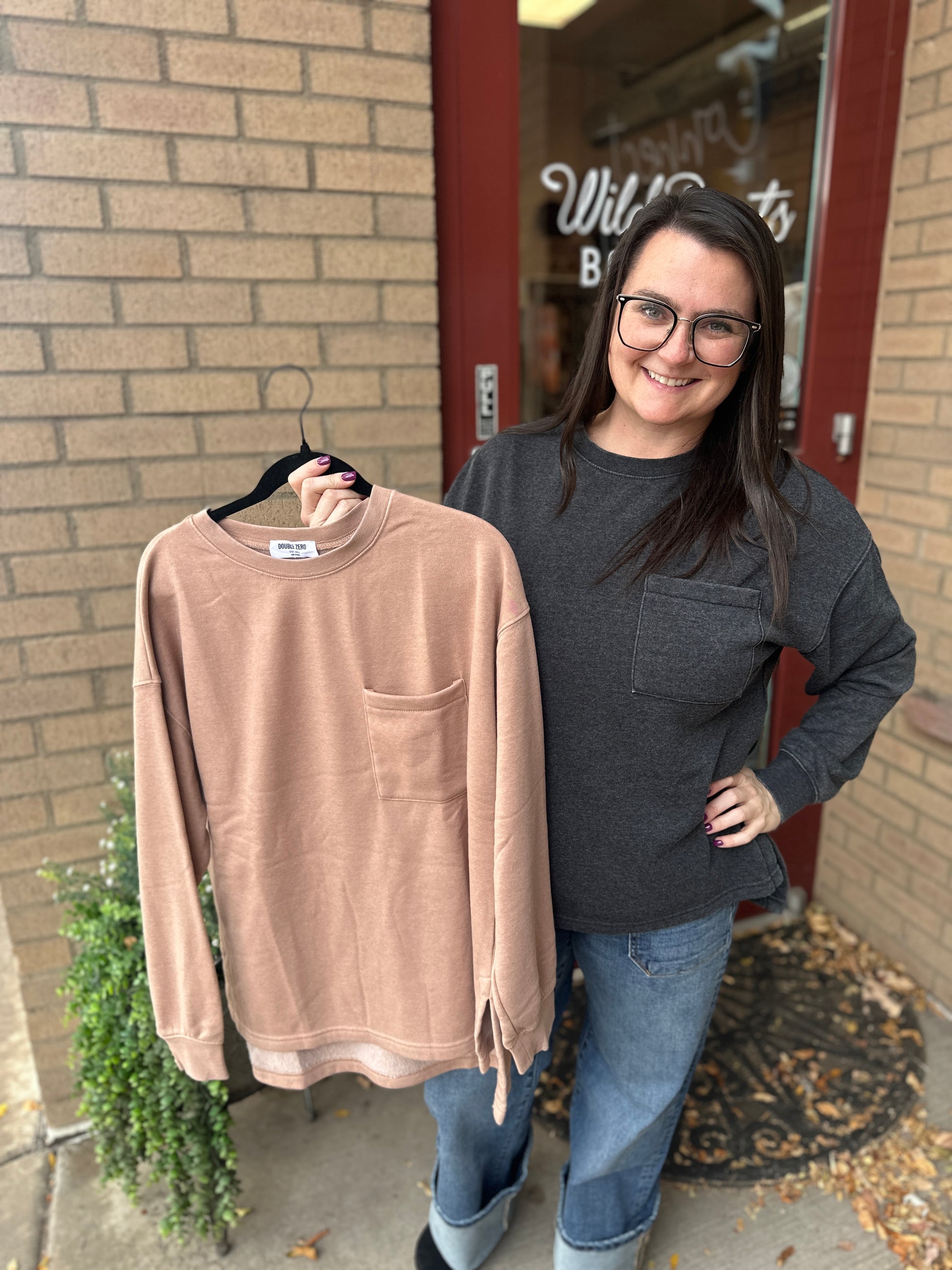 Experience unmatched comfort with this oversized pullover sweater. Featuring a solid color design, it offers a super soft interior that keeps you cozy all day. A convenient front pocket adds practicality, while side slits enhance mobility and style. Perfect for layering or wearing on its own, this sweater blends relaxed fit with effortless elegance.
