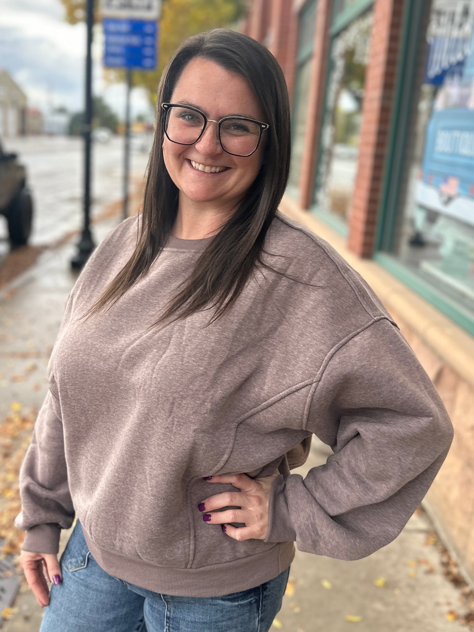 Cozy up in this oversized pullover sweater, lined with irresistibly soft fleece for extra warmth and comfort. Playful stitch detailing on the sides and back adds a unique touch, making this sweater as stylish as it is snug. Perfect for relaxed days or layering on chilly nights!