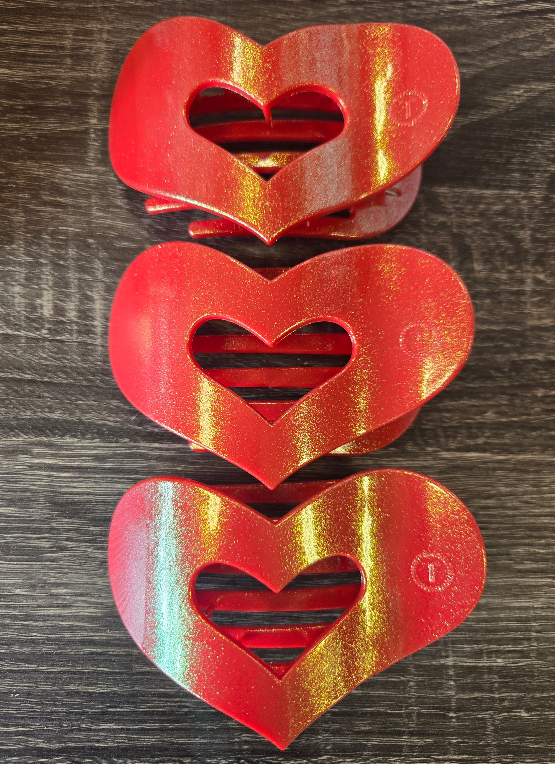 Add a pop of sparkly charm to your hair with these adorable red heart teleties! Perfect for buns, or half-ups, these large hair flat clips feature a shimmering red finish that catches the light beautifully. The cute heart design brings playful personality to any hairstyle, while the gentle hold keeps your hair secur. Whether you're dressing up for a special occasion or adding flair to your everyday look, these sparkly hearts are sure to make you smile every time you catch your reflection.