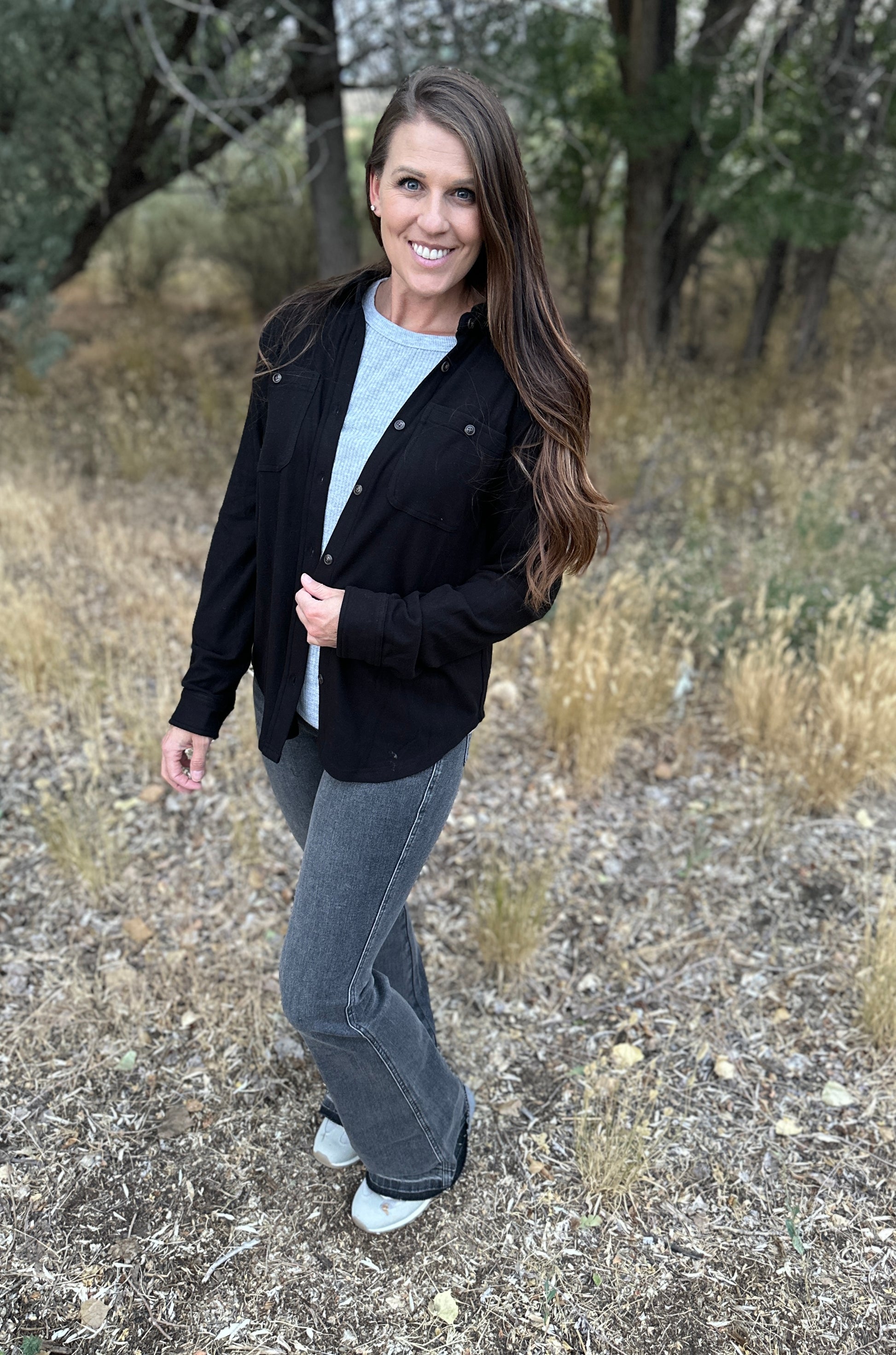 Experience cozy comfort with our Super Soft Button Up, available in three vibrant colors to brighten your wardrobe. Featuring a classic collar and handy front chest pockets, this shirt combines style and practicality. Perfect for layering or wearing solo, it’s your new go-to for effortless, playful charm.