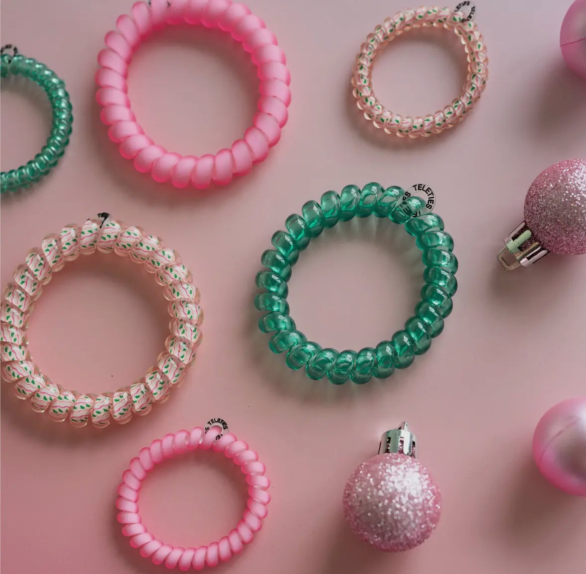 Get a grip (literally) with Teleties Large Hair Ties! These strong hold hair ties also double as a fashionable bracelet. Whether you're at work or play, these durable and waterproof ties will keep your hair in place without causing breakage, headaches, or creases. With a 4.5cm stretch that can reach up to 10cm, you'll be able to achieve any hairstyle with ease.