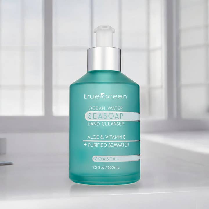 Escape to the shore with every wash. True Ocean Seasoap brings coastal vibes straight to your sink with ocean minerals and a breezy seaside scent that transports you to summer, no matter the season. Enriched with aloe and mineral-rich sea water, this gentle hand wash hydrates and softens your skin, leaving it feeling as smooth as sea glass. Each 7.5 oz. pump delivers a refreshing cleanse that's made right here in the USA. Transform your daily hand-washing routine into a mini beach getaway—because who doesn't need a splash of ocean magic?